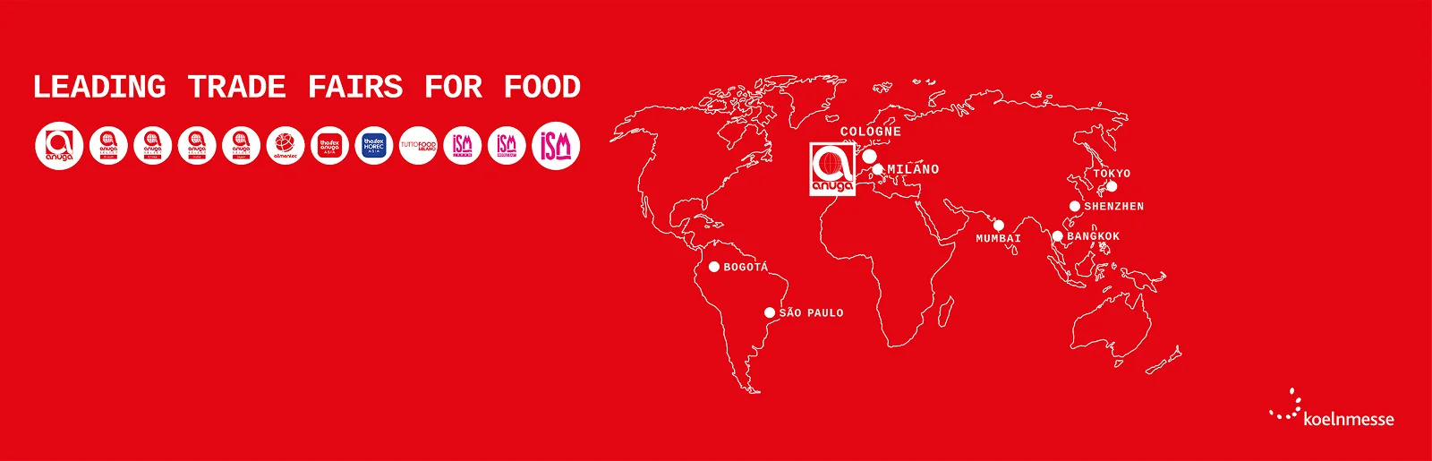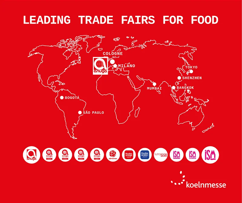 Koelnmesse also organizes leading trade fairs in the food and beverage sector in emerging markets around the world: China, India, Italy, Japan, Thailand, the United States, and the United Arab Emirates. With these global activities, Koelnmesse provides customers with a portfolio of comprehensive and high-quality events across various markets, ensuring a sustainable and international business network.